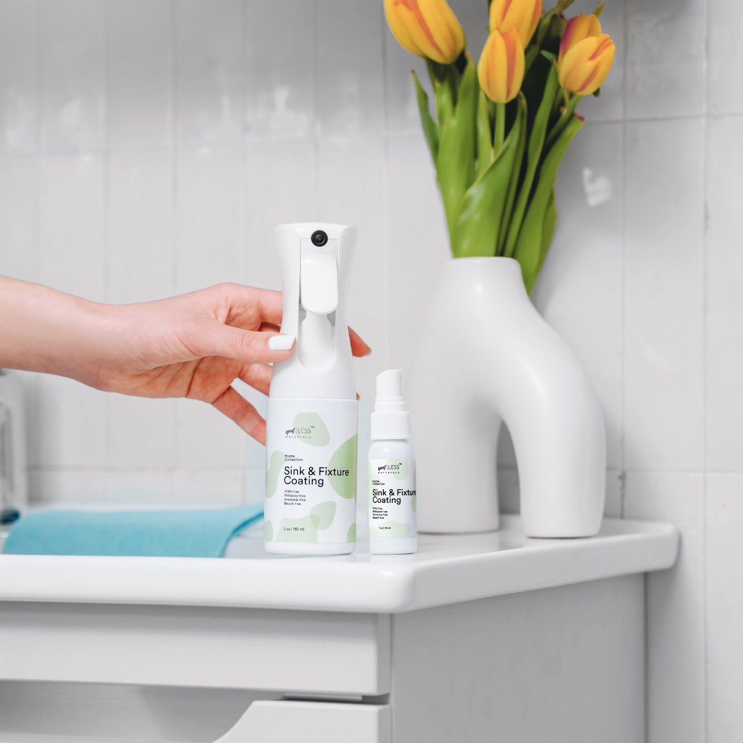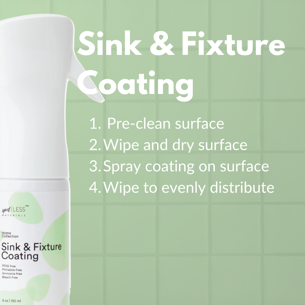 Say goodbye to stained, messy sinks, faucets, and fixtures. Our advanced Sink & Fixture Coating utilizes a liquid-entrenched smooth surface (LESS) formula to create an ultra-smooth barrier. This innovative coating causes water, grime, soap scum and food to slide right off.
